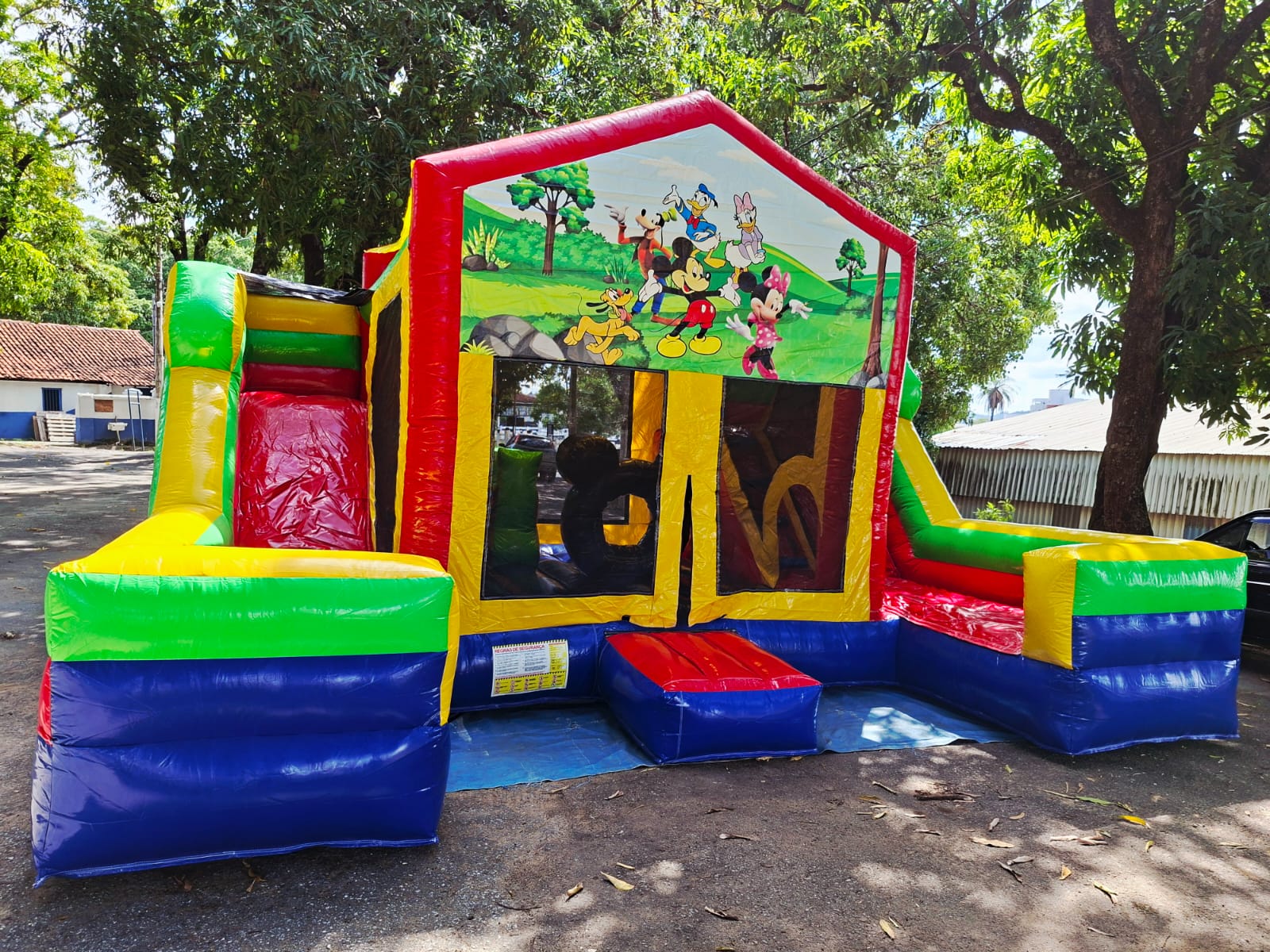 Super lançamento da ED+ Locadora de Brinquedos: um castelão incrível, temático do Mickey e da Minnie, com 2 escorregadores e obstáculos internos que garantem aventura do início ao fim!