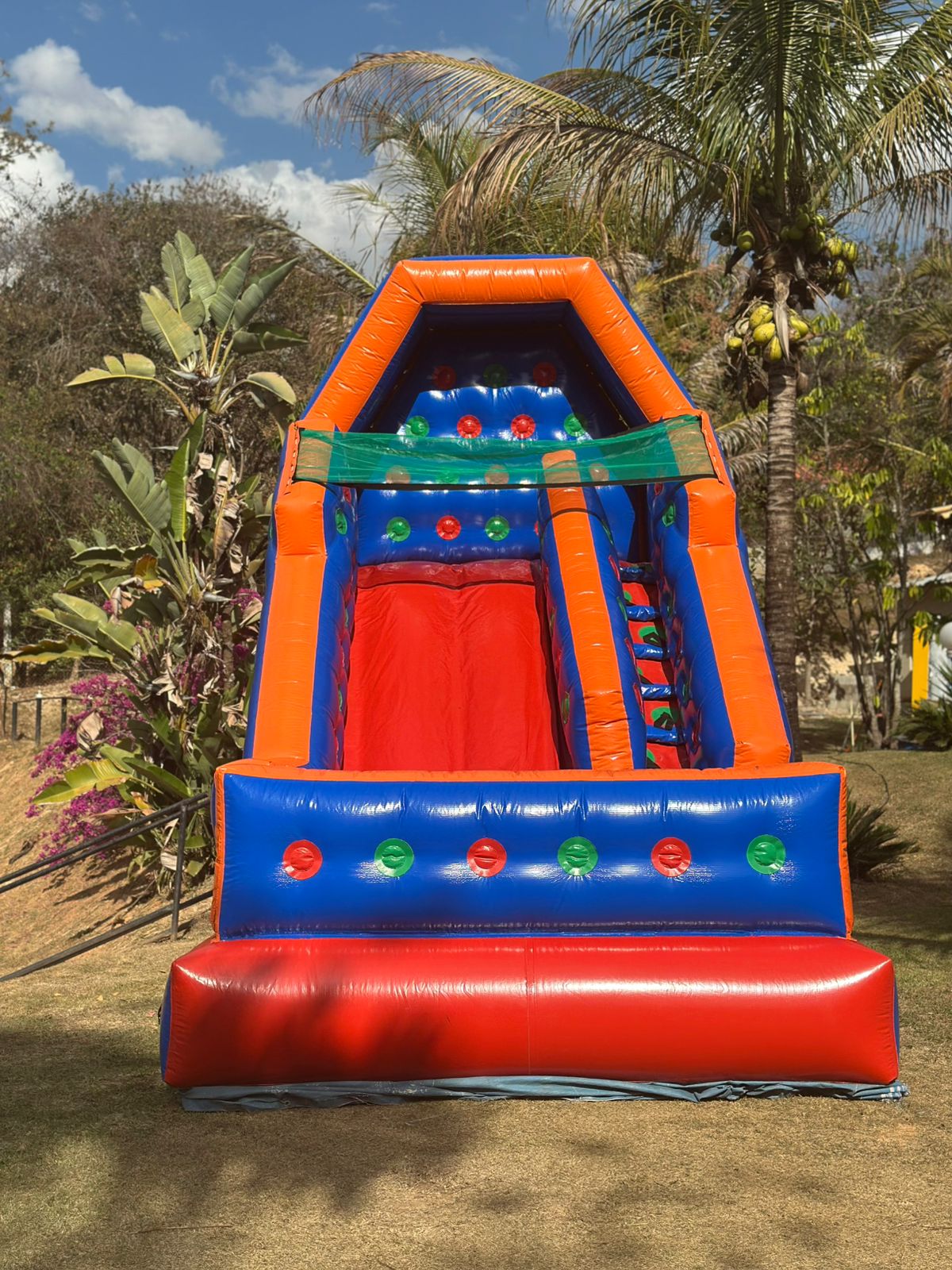 O ápice da diversão! Nosso Tobogã inflável gigante garante frio na barriga e alegria contagiante. Atração monumental que todos amam!