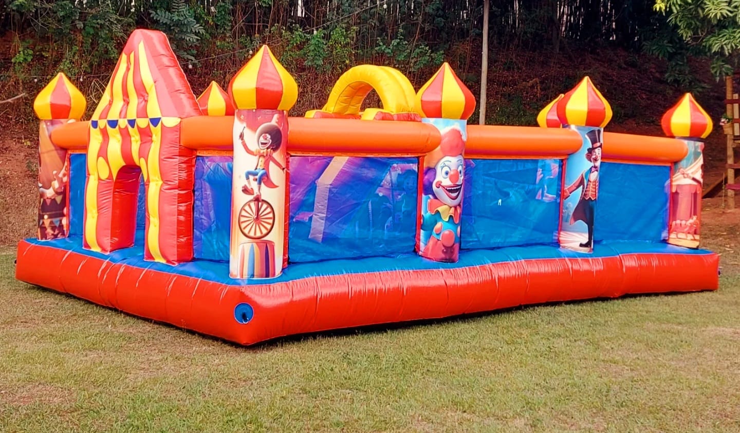 Nosso brinquedo Multiatividades Circo (7Mx5M) é pura alegria, com cores vibrantes e muitas opções para brincar, pular e se divertir com segurança. Uma atração que transforma qualquer evento em um verdadeiro espetáculo de sorrisos! 🥳