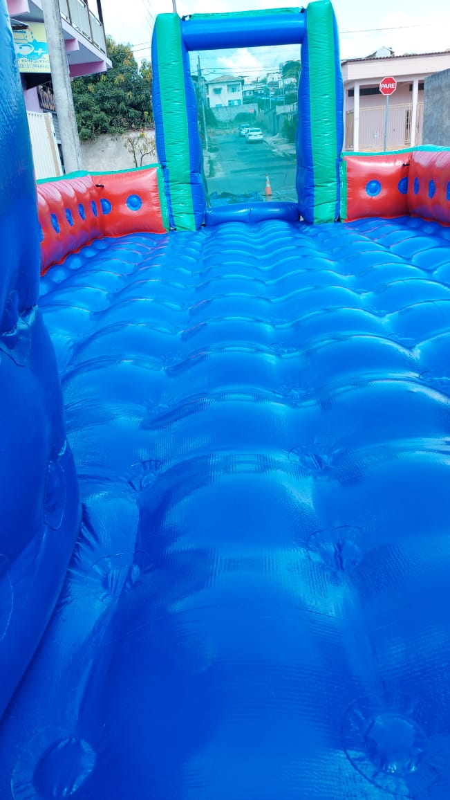 A diversão molhada perfeita! O Futebol de Sabão 8x4m garante risadas num campo inflável incrível para espaços menores. Alugue já!