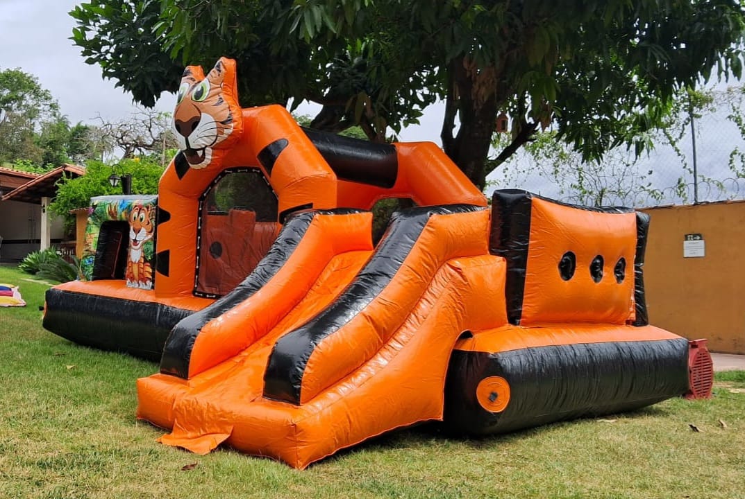 Diversão tripla! O Multiplay Tigre combina Pula-Pula, Piscina de Bolinhas e Escorregador. Super seguro e a atração certa para os pequenos!