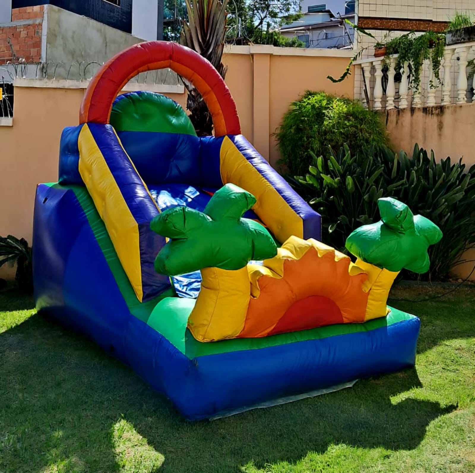 O ápice da diversão! Nosso Tobogã inflável gigante garante frio na barriga e alegria contagiante. Atração monumental que todos amam!